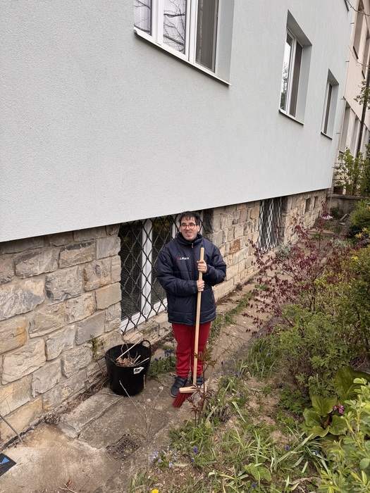 Naši chlapi z chráněného bydlení se pustili do úklidu i příprav záhonů – a jde jim to skvěle!