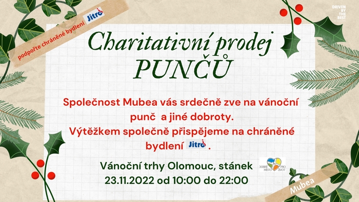 23. 11. 2022 můžete ke stánku Dobrého místa pro život přijít a zakoupením punče podpořit naši další službu Chráněné bydlení. Klienti a pracovníci Chráněného bydlení spolu se zaměstnanci firmy Mubea se na vás těší.